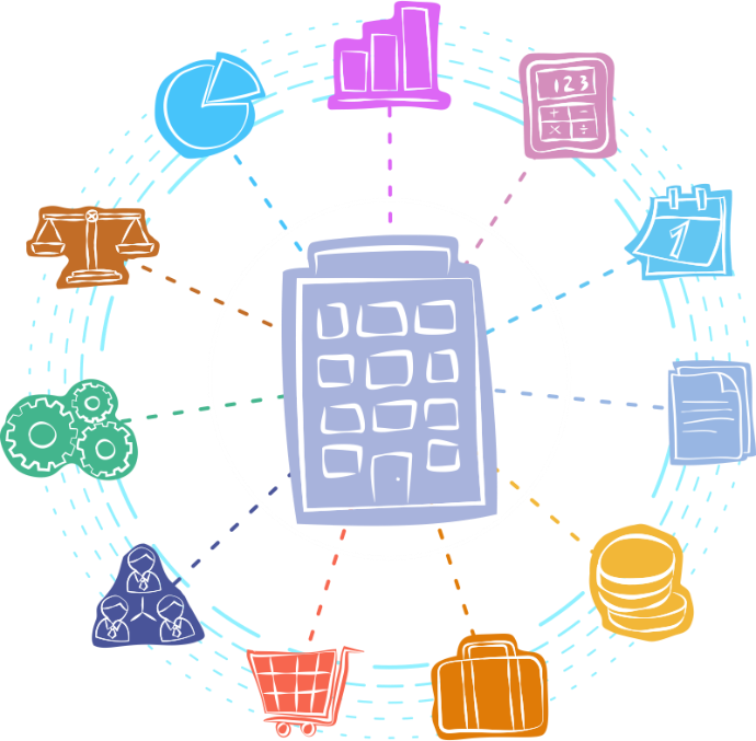 Продукт "BAS Комплексне управління підприємством" автоматизує наступні види діяльності торговельного та виробничого підприємства: