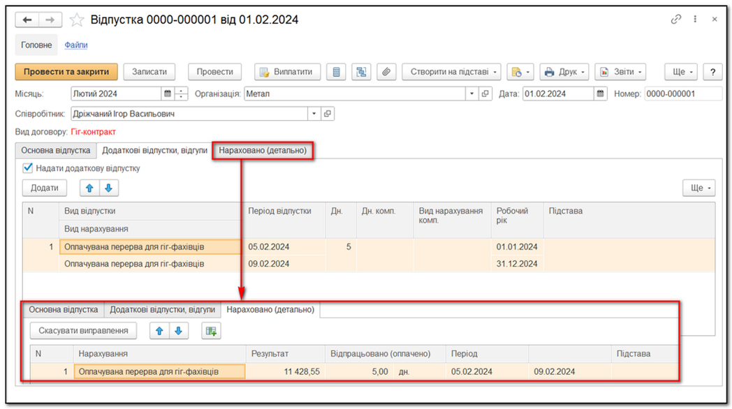 Зображення 3: Нарахування для оплати за гіг-контрактом